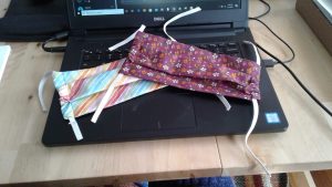 Effective May 6th, by executive order, Massachusetts residents over the age of two are required to wear a cloth face covering or mask in public spaces where social distancing is not possible. So, I imagine like many of my fellow residents of the commonwealth, I spent some time earlier this week at the sewing machine making cloth face masks (I used this great online tutorial courtesy of Gather Here in Somerville, Mass.) so that my wife and I are equipped to continue our morning walks and weekly trip to the grocery store. The act of sitting at the sewing machine, wrestling with box pleats, brought to mind a whimsical sewing-related item in the MHS collections that I had pulled for a colleague at the end of last year. Happily, I had a copy of the image that I snapped at the time — so now even though we don’t have ready access to our physical collections I’m able to share the item with all of you.
