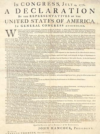 First Printing of the Declaration of Independence
