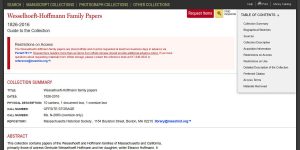 For example, collection guides. These online guides contain detailed descriptions of a collection’s contents and reflect their physical arrangement. Over the last month, Collections Services has been working remotely to encode many of our old paper guides, inventories, and box lists for the MHS website. Several members of our department are contributing to this effort, from simple data entry to revisions, encoding, and review.