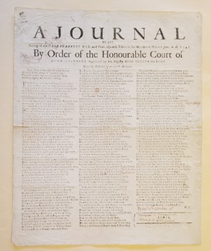 The MHS has a few items published by Ann Franklin, including this broadside titled “A journal of the survey of the Narragansett Bay, and parts adjacent” by William Chandler, which Franklin printed in 1741.