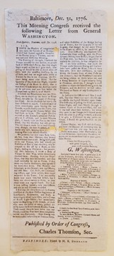 Although we would love to say that we hold the other copies, in fact, the MHS holds one item published by M.K. Goddard: “Baltimore, Dec. 31, 1776. This morning Congress received the following…”