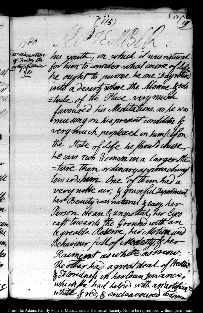 John Quincy Adams diary 3, 25 July 1780 - 30 September 1780, page 115