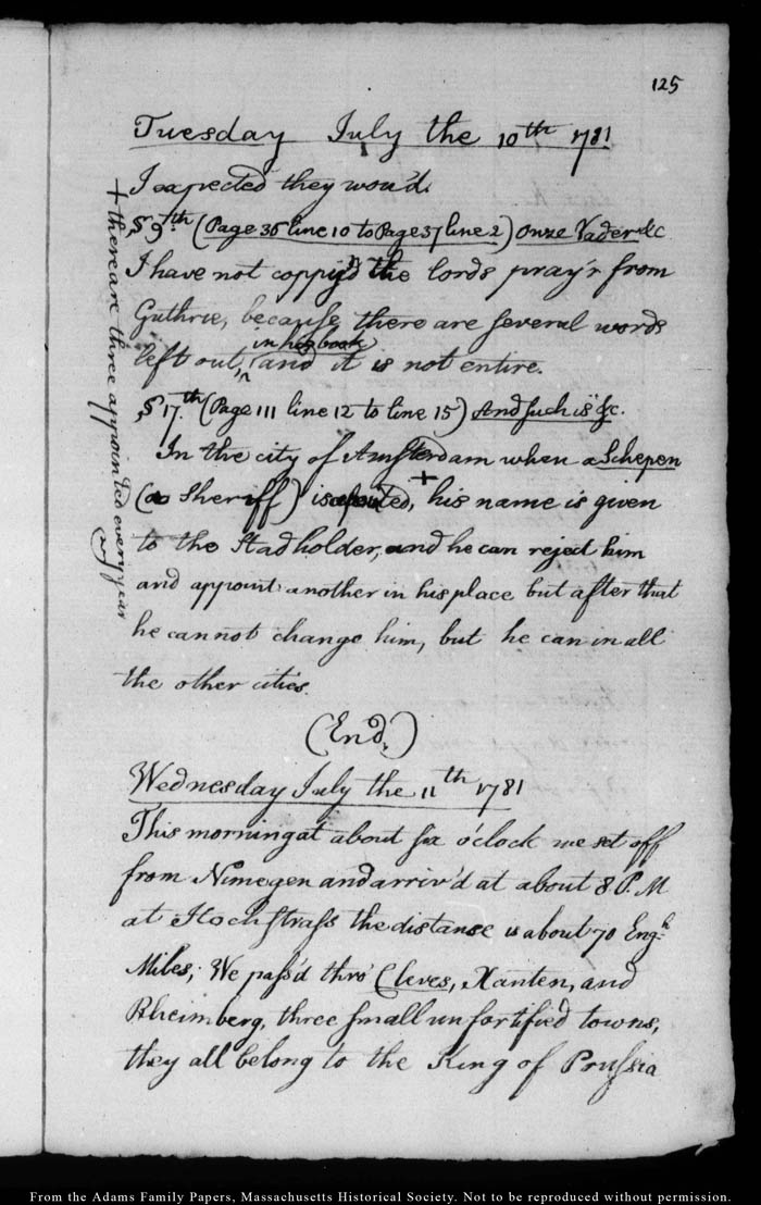 John Quincy Adams diary 4, 9 June 1781 - 27 August 1781, page 125