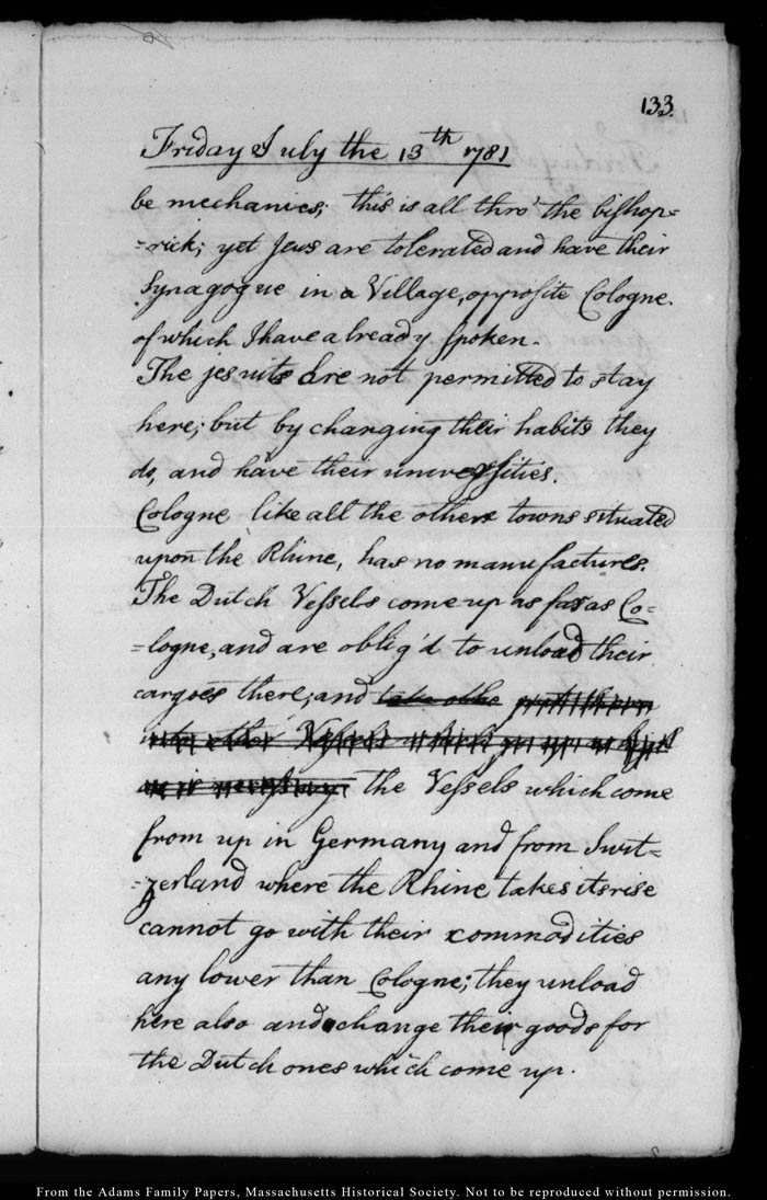 John Quincy Adams diary 4, 9 June 1781 - 27 August 1781, page 133