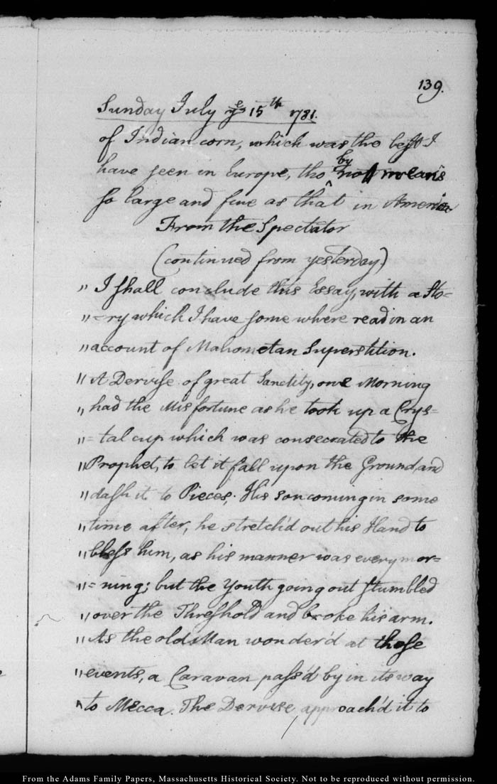 John Quincy Adams diary 4, 9 June 1781 - 27 August 1781, page 139