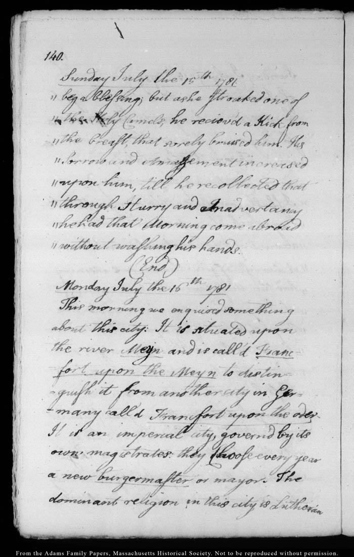 John Quincy Adams diary 4, 9 June 1781 - 27 August 1781, page 140
