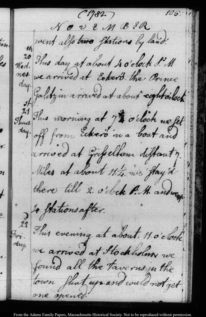 John Quincy Adams diary 5, 27 January 1782 - 23 November 1782, page 105