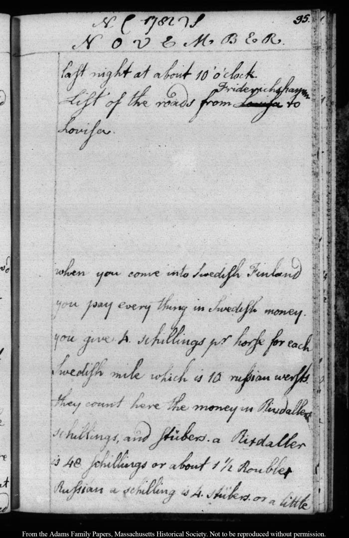 John Quincy Adams diary 5, 27 January 1782 - 23 November 1782, page 95