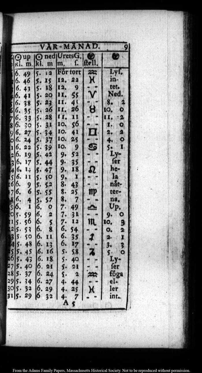 John Quincy Adams diary 7 (almanac), 31 December 1782 - 17 October 1783, page 105