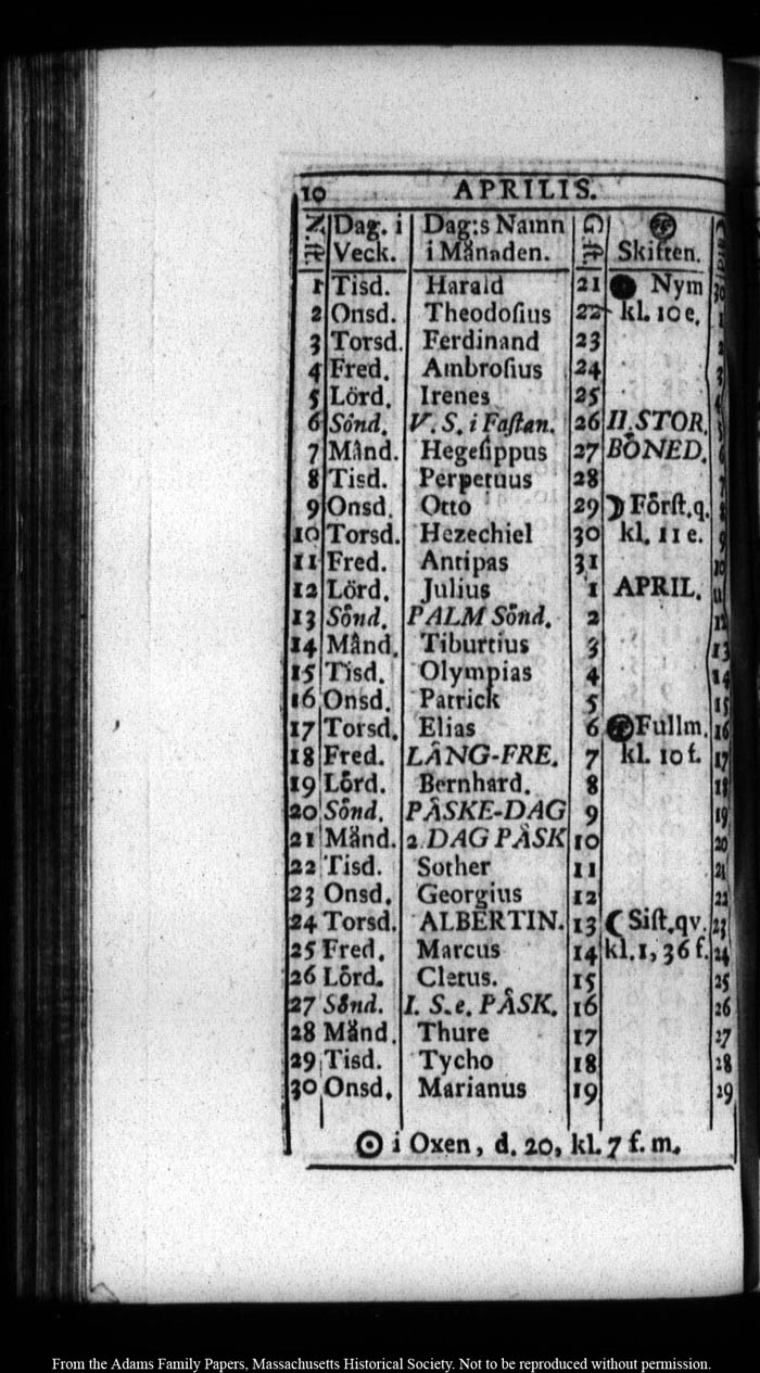 John Quincy Adams diary 7 (almanac), 31 December 1782 - 17 October 1783, page 106