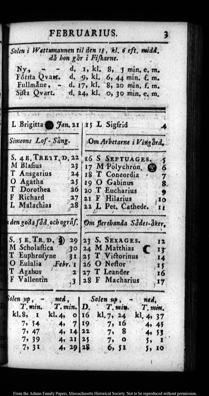 John Quincy Adams diary 7 (almanac), 31 December 1782 - 17 October 1783, page 255