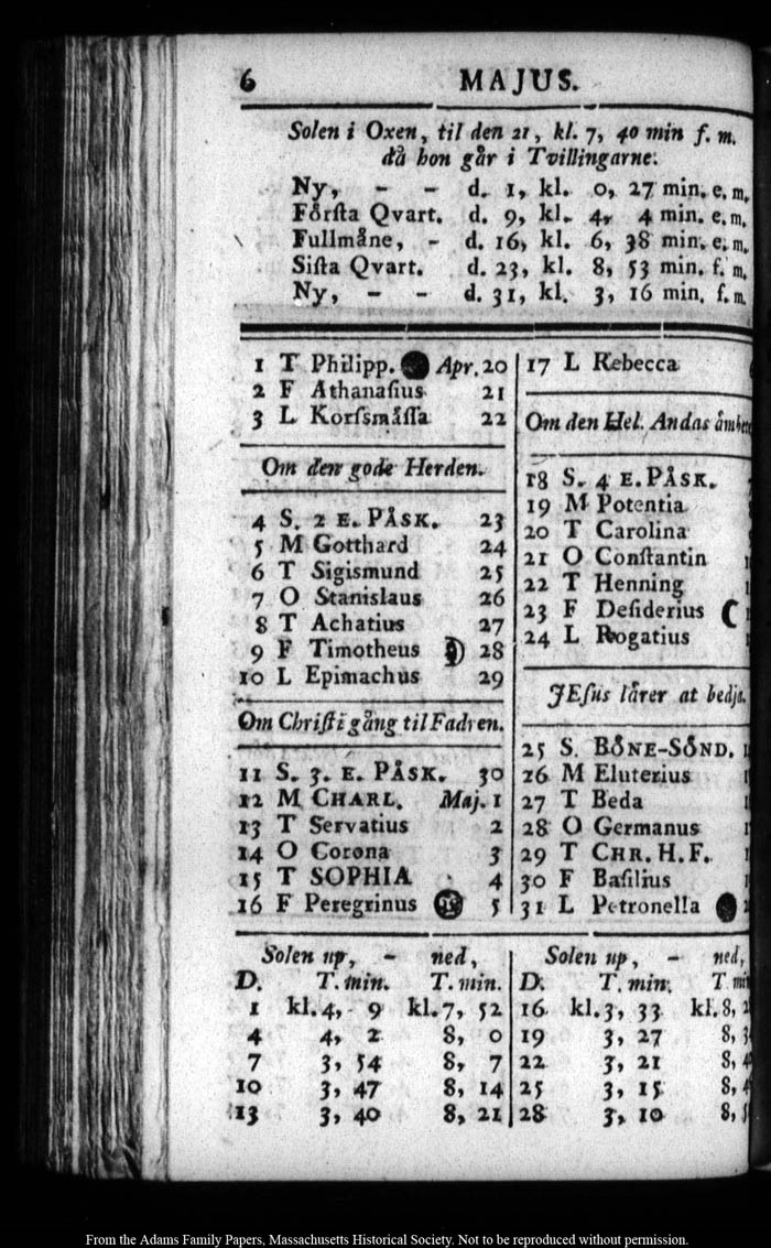 John Quincy Adams diary 7 (almanac), 31 December 1782 - 17 October 1783, page 258
