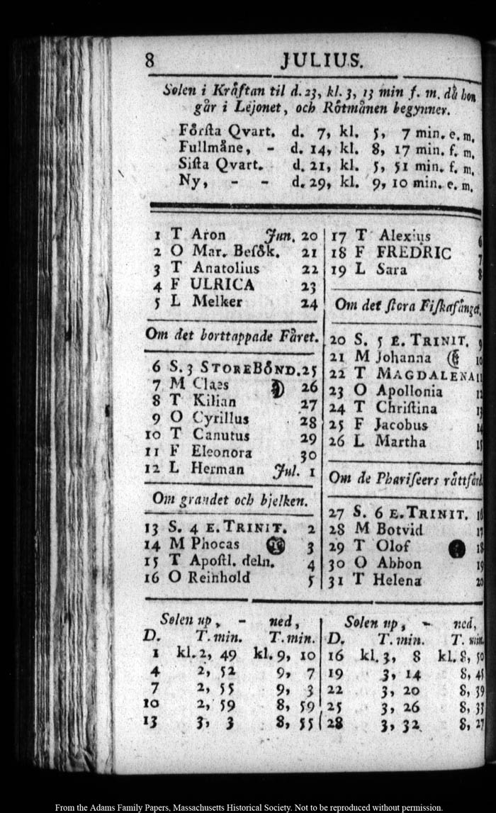 John Quincy Adams diary 7 (almanac), 31 December 1782 - 17 October 1783, page 260