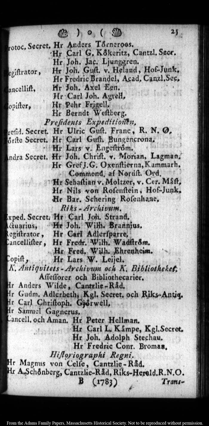 John Quincy Adams diary 7 (almanac), 31 December 1782 - 17 October 1783, page 277