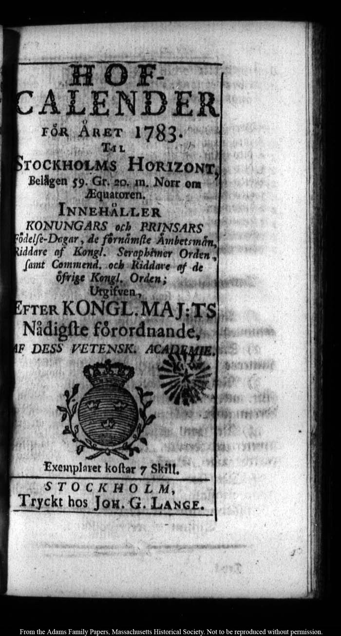 John Quincy Adams diary 7 (almanac), 31 December 1782 - 17 October 1783, page 97