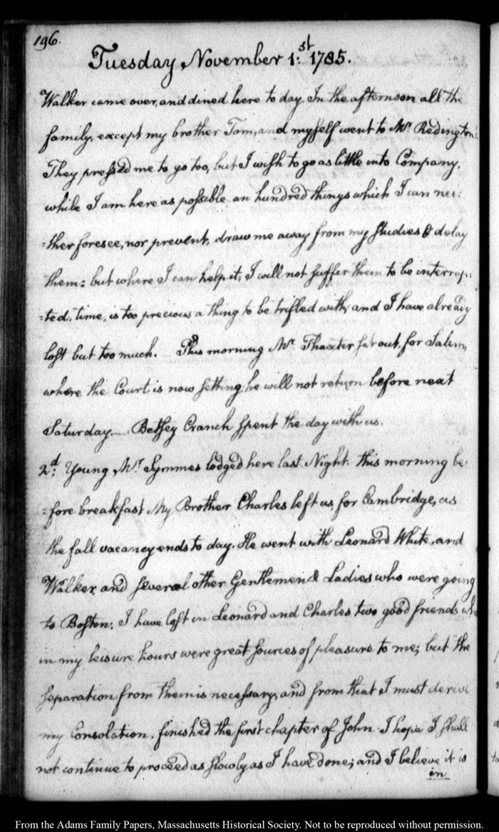 John Quincy Adams diary 10, 1 January 1785 - 30 June 1786, page 196