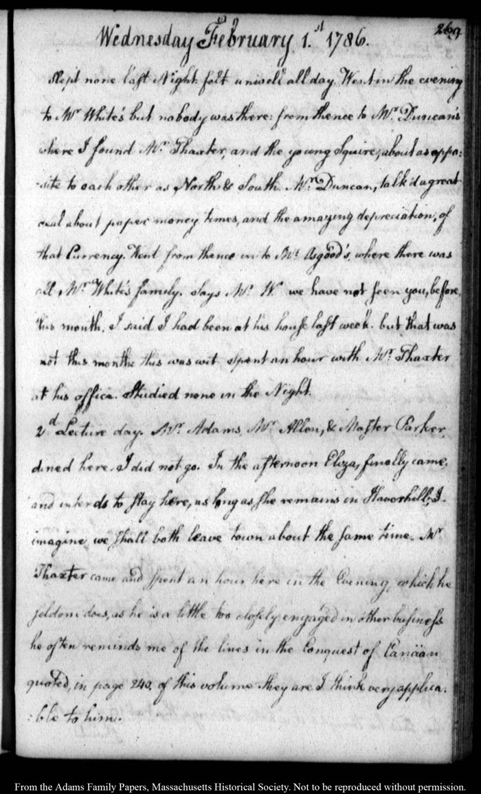 John Quincy Adams diary 10, 1 January 1785 - 30 June 1786, page 269