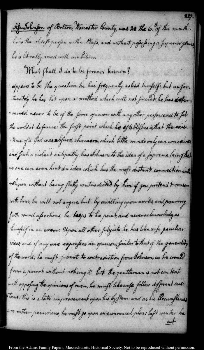 John Quincy Adams diary 11, 1 July 1786 - 31 October 1787, page 227