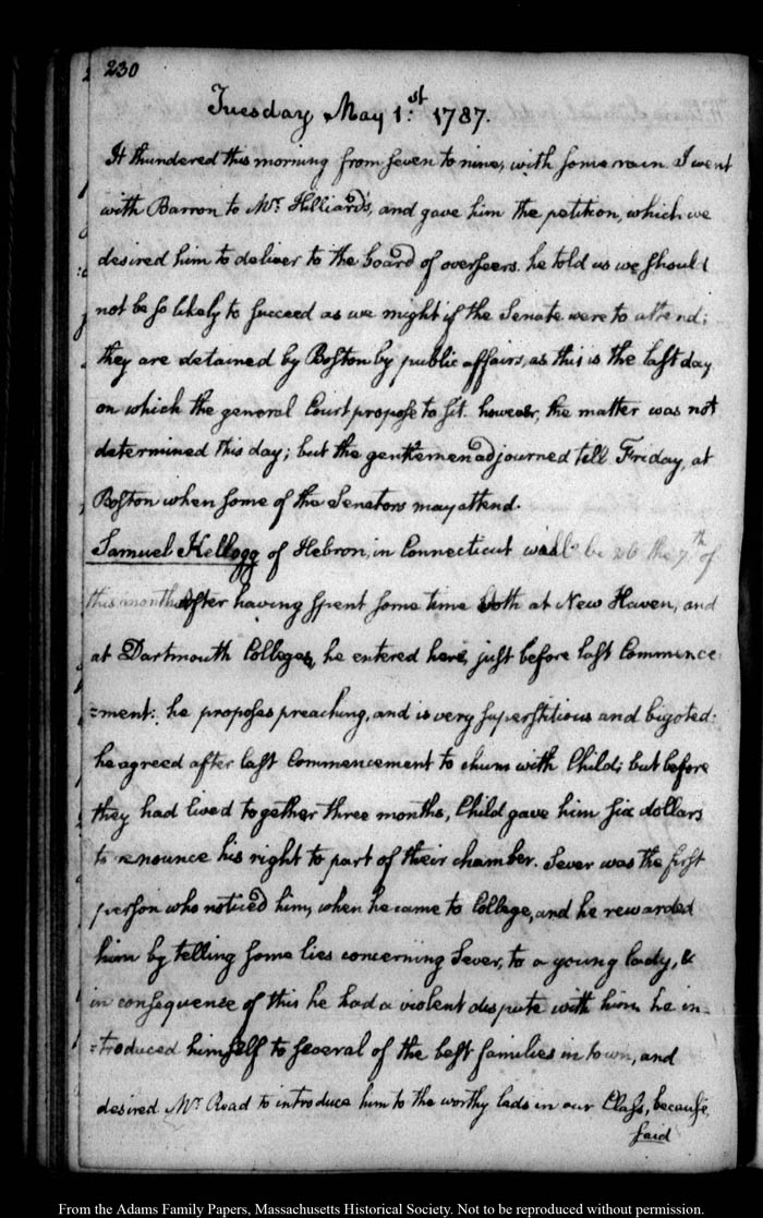 John Quincy Adams diary 11, 1 July 1786 - 31 October 1787, page 230