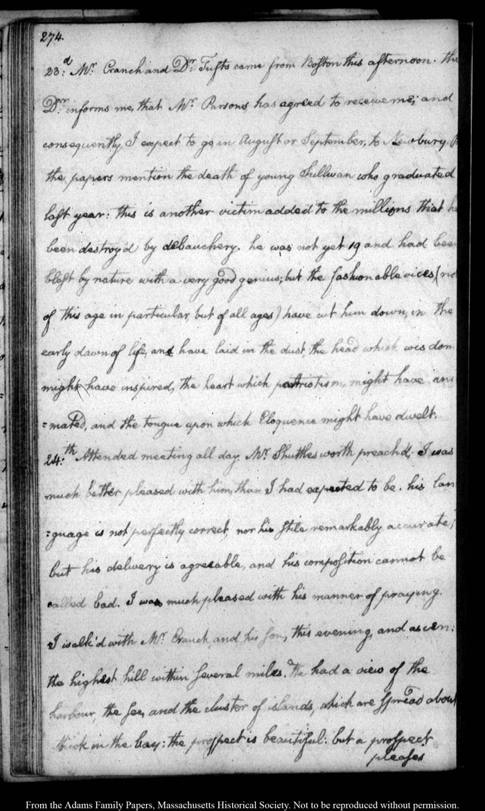 John Quincy Adams diary 11, 1 July 1786 - 31 October 1787, page 274