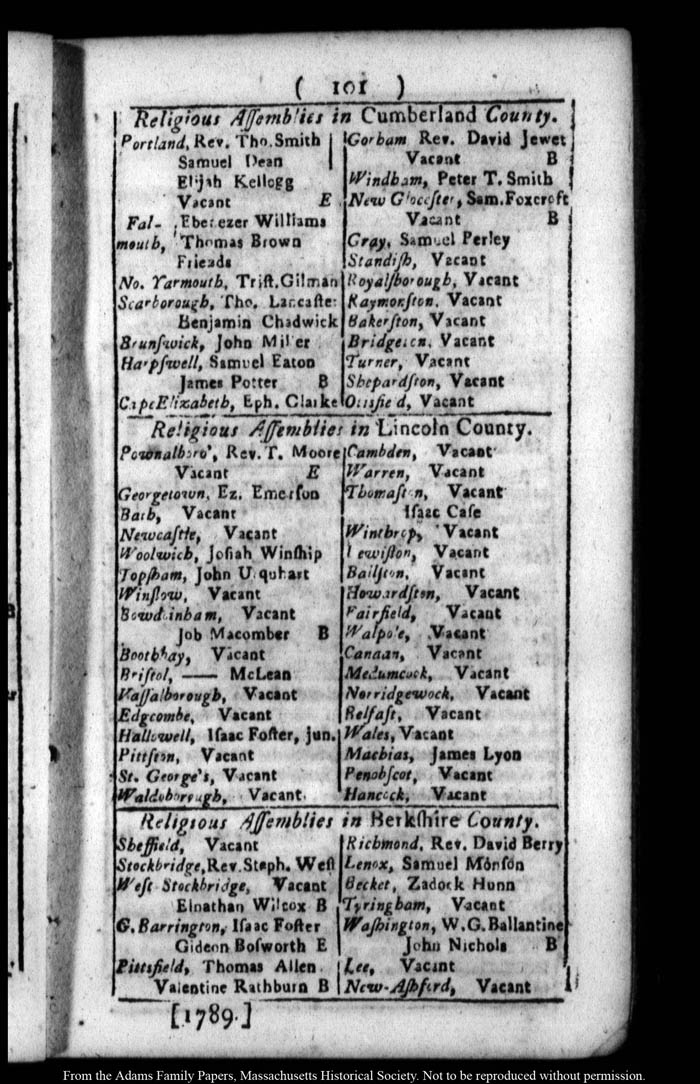 John Quincy Adams diary 14 (almanac), 1789, page 151