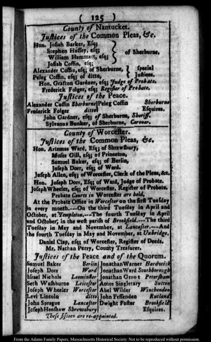 John Quincy Adams diary 14 (almanac), 1789, page 175