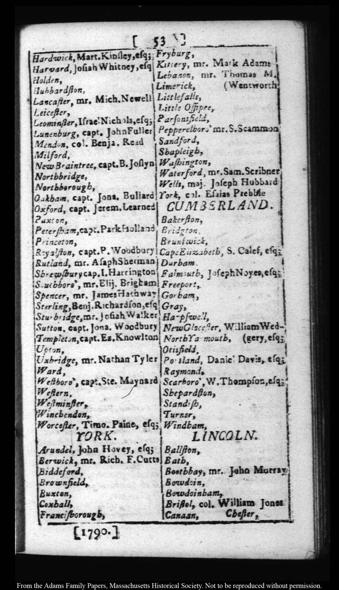 John Quincy Adams diary 15 (almanac), 1790, page 101
