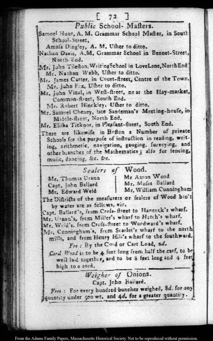 [note: Published page of Fleets Massachusetts Register, &c.,
