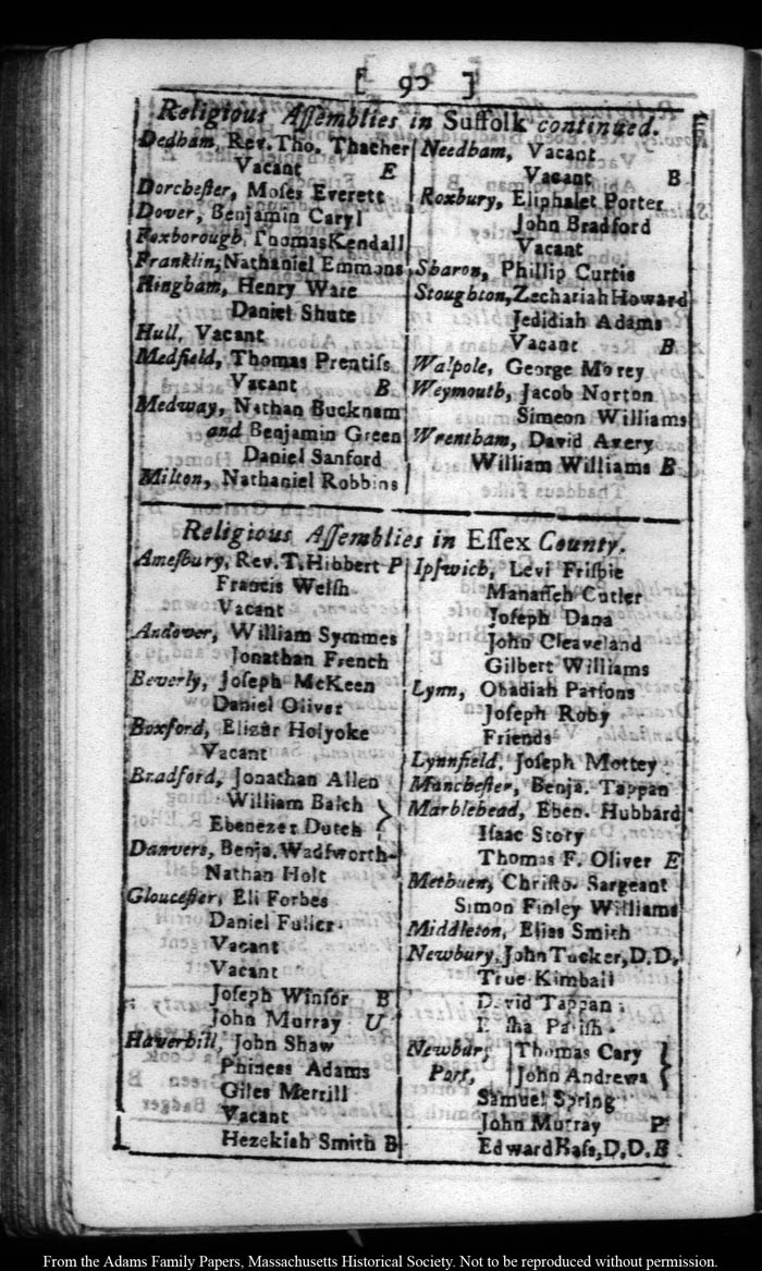 [note: Published page of Fleets Massachusetts Register, &c.,
