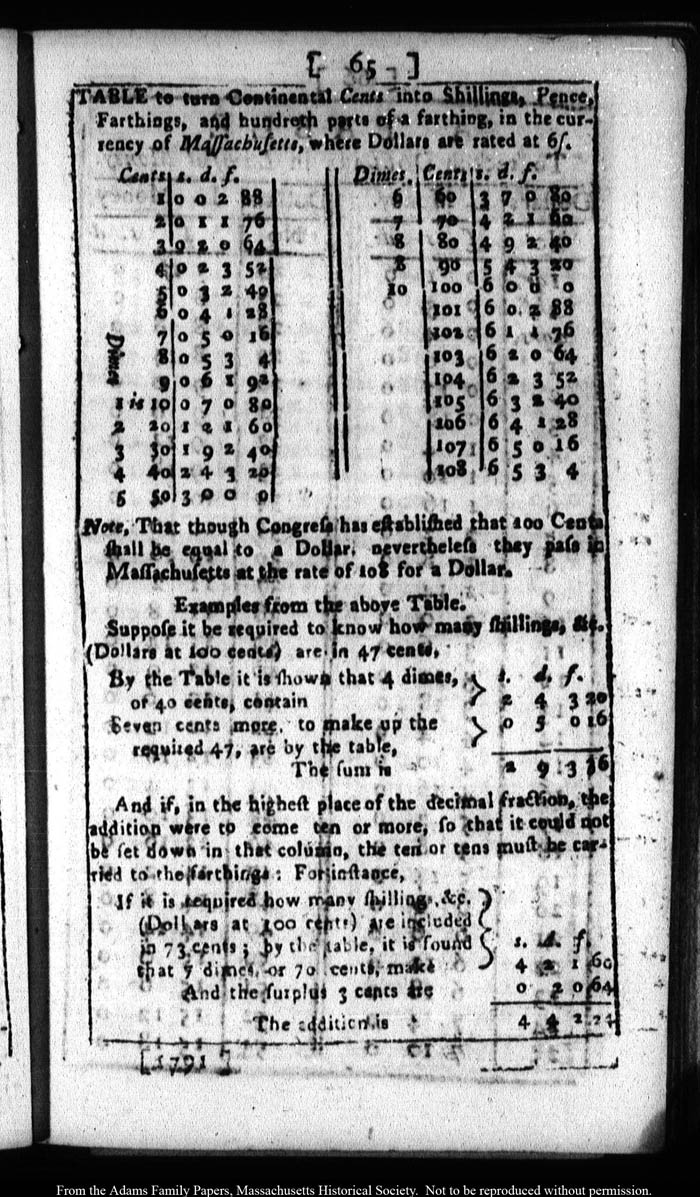 John Quincy Adams diary 16 (almanac), 1791, page 119