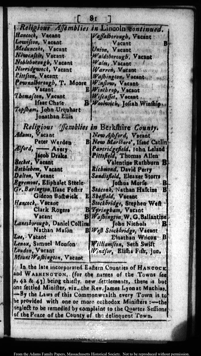 John Quincy Adams diary 16 (almanac), 1791, page 135