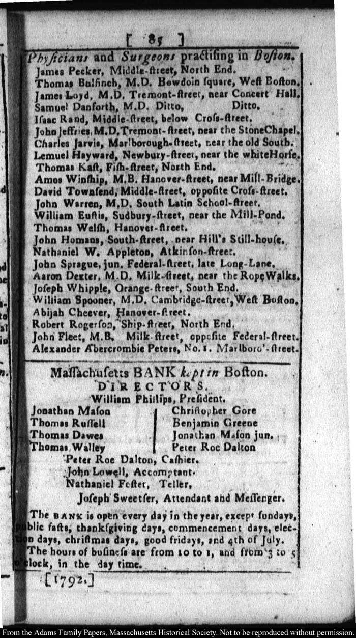 [note: Published page of Fleets Massachusetts Register for