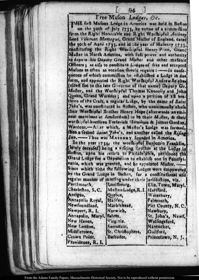 [note: Published page of Fleets Massachusetts Register for