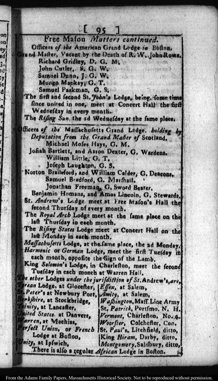[note: Published page of Fleets Massachusetts Register for