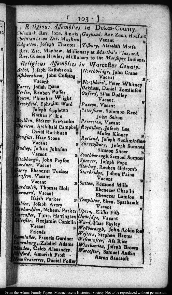 [note: Published page of Fleets Massachusetts Register for