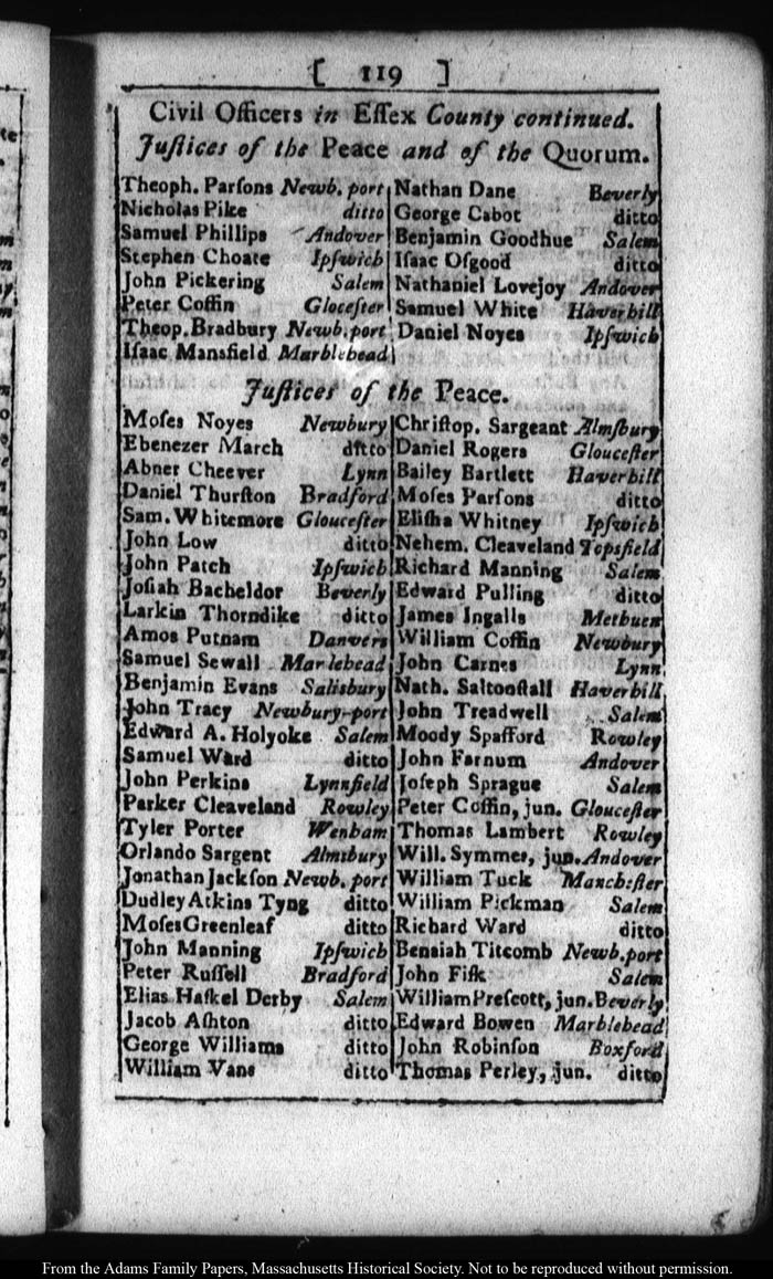 [note: Published page of Fleets Massachusetts Register for