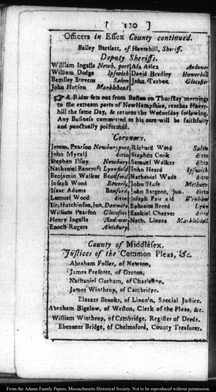 [note: Published page of Fleets Massachusetts Register for