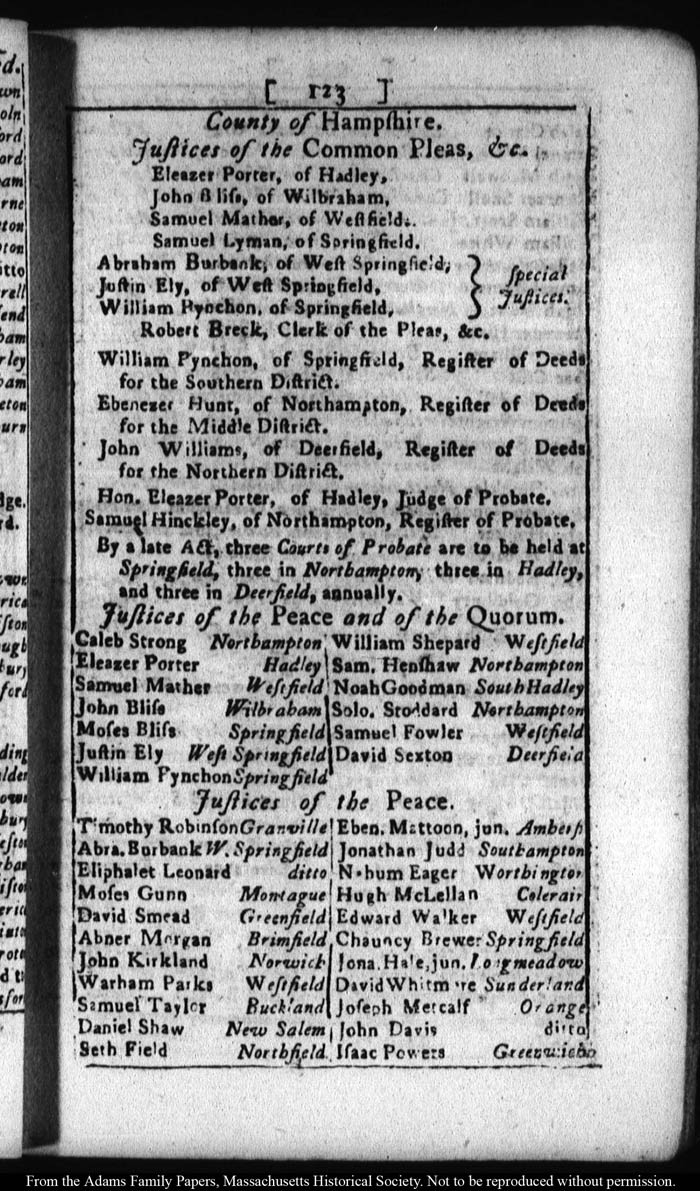 [note: Published page of Fleets Massachusetts Register for