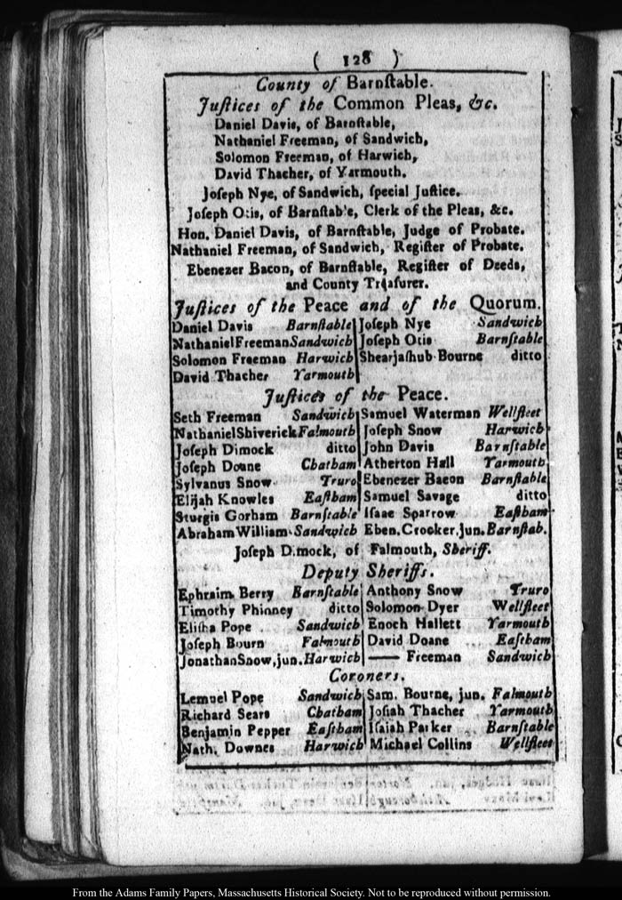 [note: Published page of Fleets Massachusetts Register for