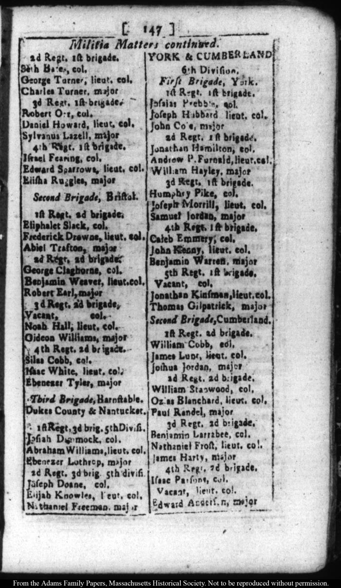 [note: Published page of Fleets Massachusetts Register for