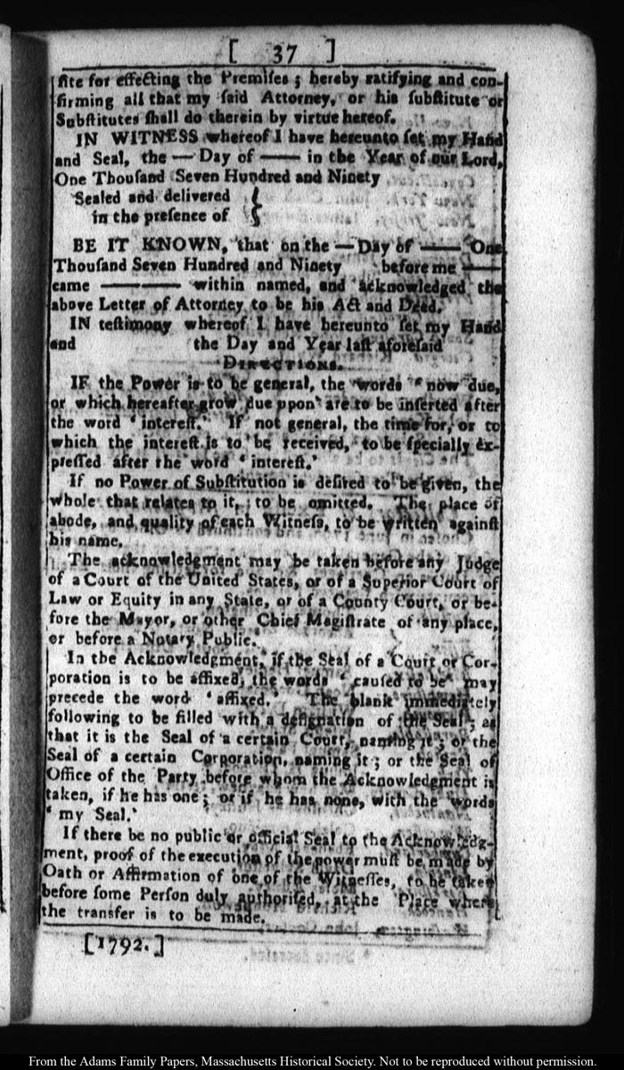 John Quincy Adams diary 18 (almanac), 1792, page 89