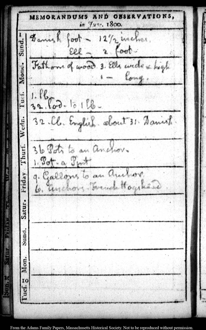 John Quincy Adams diary 25 (almanac), 1800, page 48