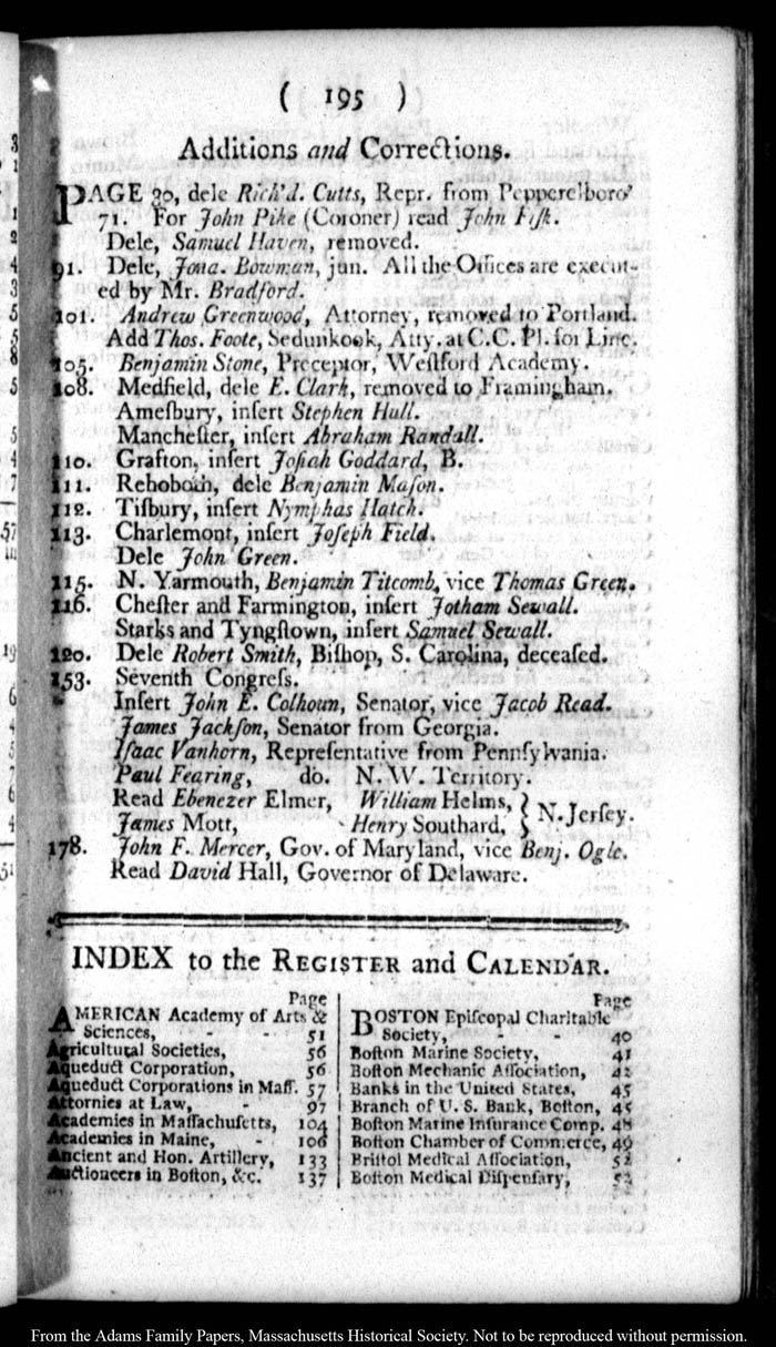 John Quincy Adams diary 26 (almanac), 1802, page 209