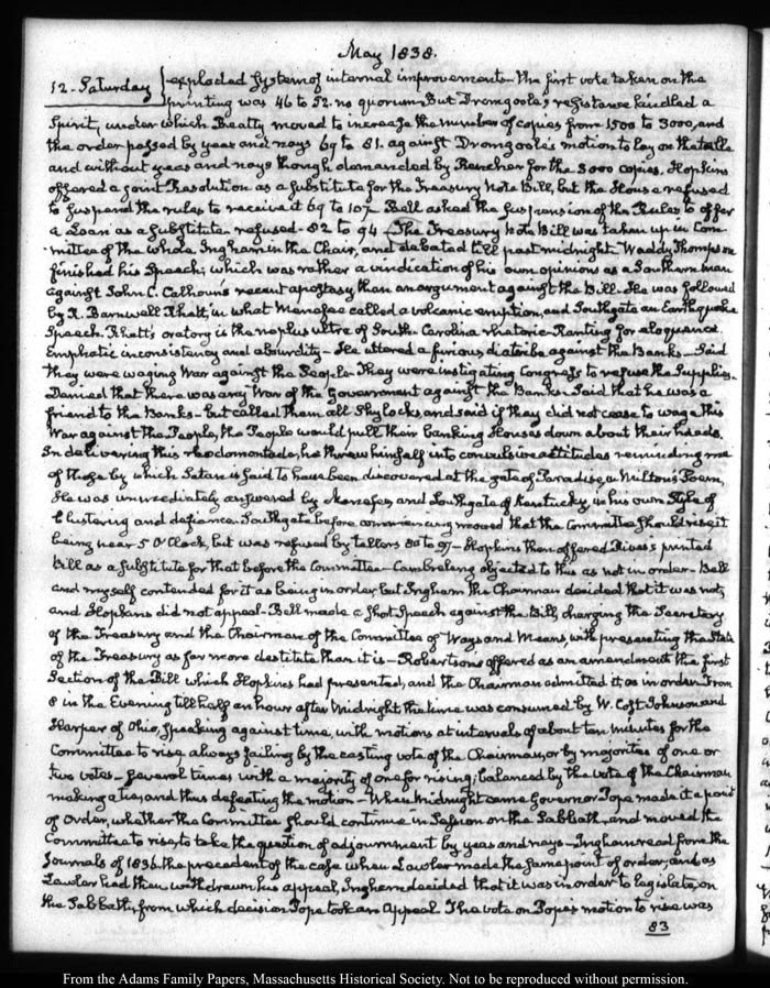 View full, authoritative transcriptions with page images of the diaries at John Quincy Adams Digital Diary part of the Primary Source Cooperative at the MHS.