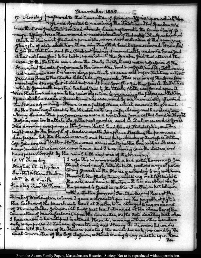 View full, authoritative transcriptions with page images of the diaries at John Quincy Adams Digital Diary part of the Primary Source Cooperative at the MHS.