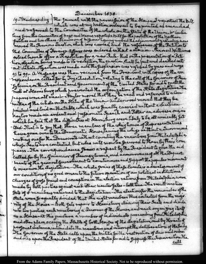 John Quincy Adams diary 33, "Diary in Abridgment," 1 December 1821 - 31 December 1838 (with gaps), page 695
