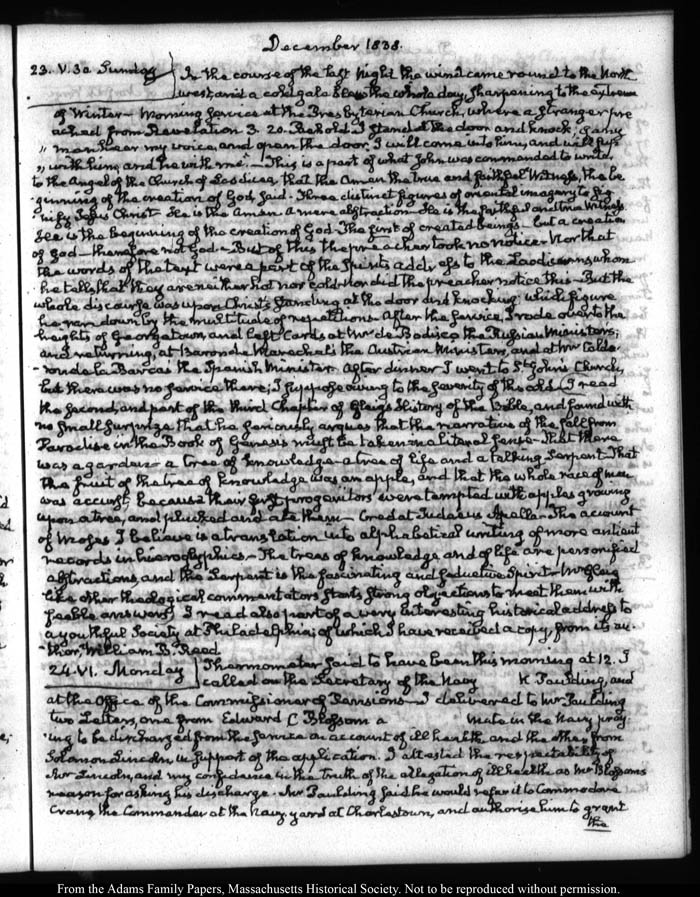 View full, authoritative transcriptions with page images of the diaries at John Quincy Adams Digital Diary part of the Primary Source Cooperative at the MHS.