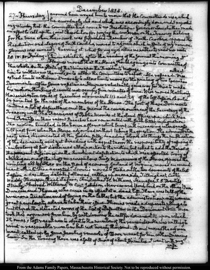 View full, authoritative transcriptions with page images of the diaries at John Quincy Adams Digital Diary part of the Primary Source Cooperative at the MHS.