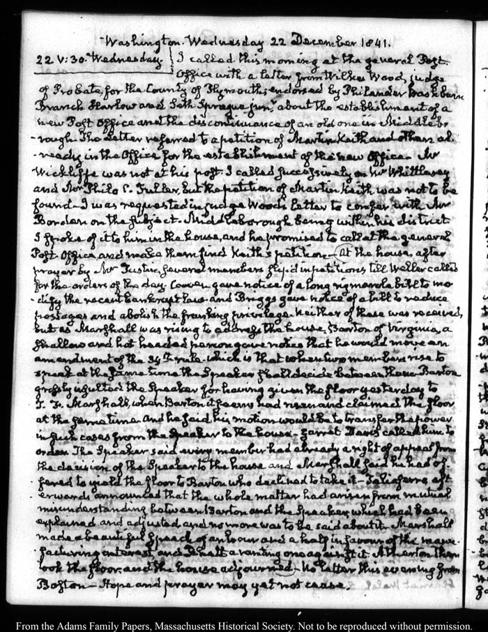Washington. Wednesday 22 December 1841.