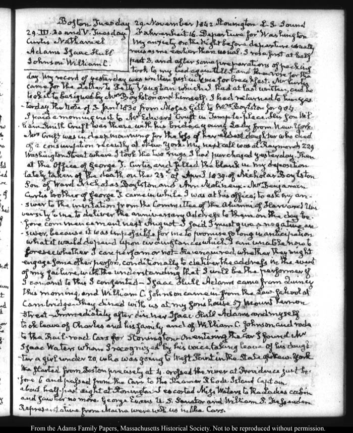 View full, authoritative transcriptions with page images of the diaries at John Quincy Adams Digital Diary part of the Primary Source Cooperative at the MHS.